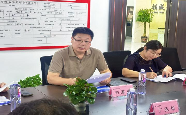 領(lǐng)威保安公司總經(jīng)理劉道軍、副總經(jīng)理劉花全程陪同接待,對各位領(lǐng)導(dǎo)的到來表示熱烈歡迎。在座談交流中,劉道軍總經(jīng)理圍繞公司發(fā)展歷程、業(yè)務(wù)布局、隊(duì)伍建設(shè)及未來規(guī)劃等核心內(nèi)容作專題介紹,同時(shí)結(jié)合行業(yè)實(shí)踐,深入分析了當(dāng)前保安行業(yè)面臨的發(fā)展痛點(diǎn),并就規(guī)范行業(yè)管理、提升服務(wù)質(zhì)效等方面提出針對性建議。